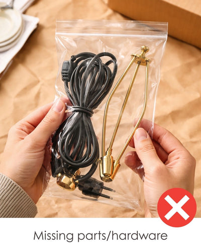 - Products missing original packaging components (styrofoam, parts, instructions, etc.)